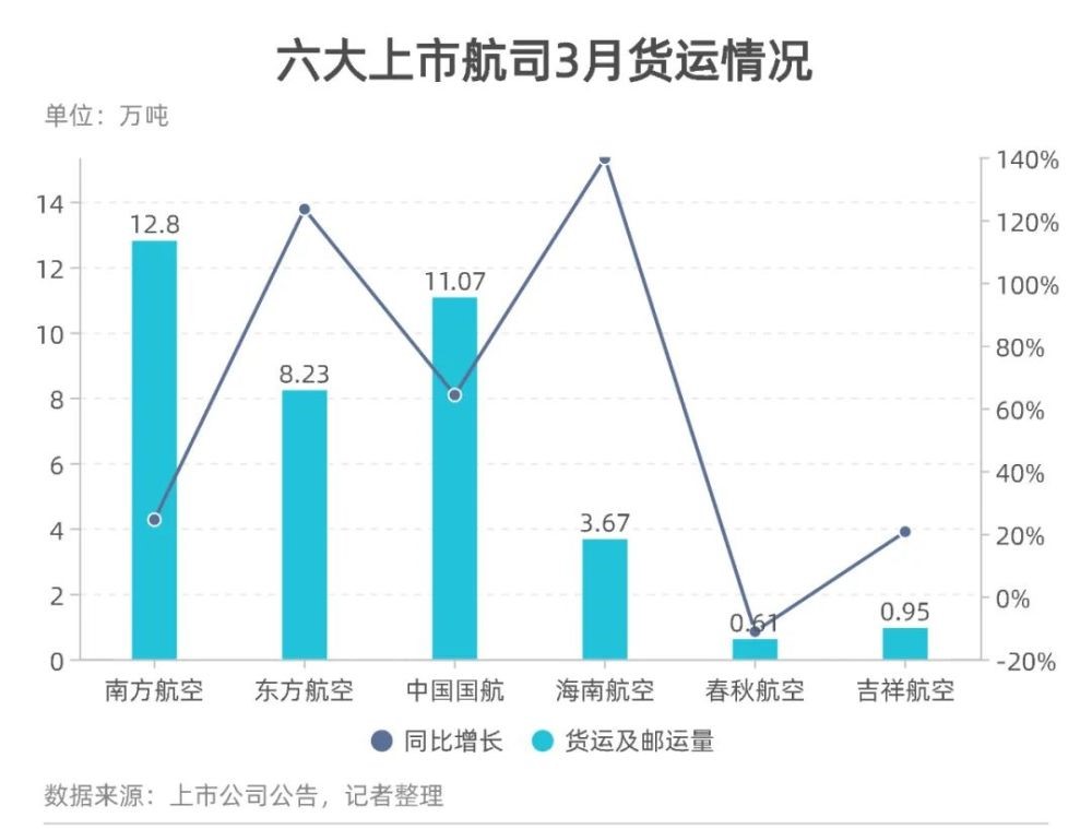 貨運表現:南航領先,海航增長最快